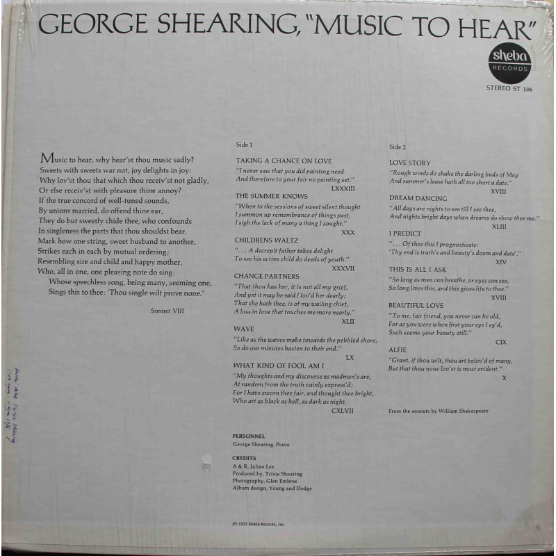 George Shearing – Music To Hear (LP / Vinyl)