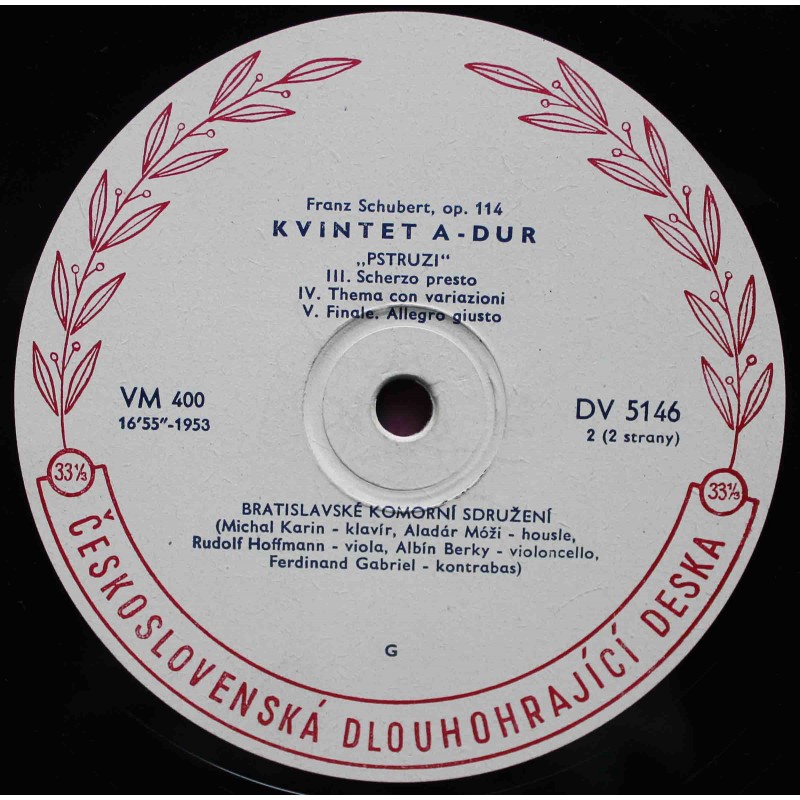 Franz Schubert / Bratislavské Komorní Sdružení – Kvintet A-Dur (LP / Vinyl)